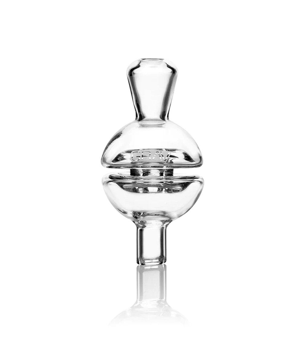 The GRAV Yo-Yo Carb Cap is a stylish and functional accessory designed to enhance your dabbing experience. Crafted from high-quality borosilicate glass, this carb cap features a unique yo-yo design that allows for easy manipulation and precise airflow control. The cap is equipped with a small hole that can be used to direct airflow and regulate the temperature of your dab. With its sleek appearance and practical functionality, the GRAV Yo-Yo Carb Cap is the perfect addition to any dab rig or water pipe setup.